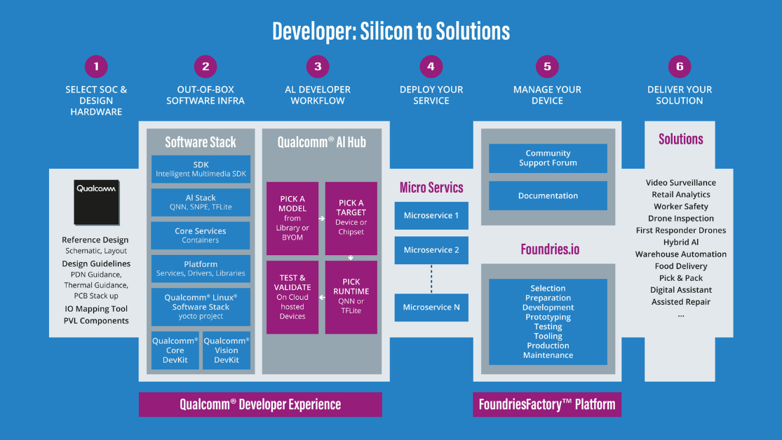 Powering the Dragonwing IQ9 Series from a software perspective, Qualcomm Technologies uses the Qualcomm Developer Network, an ongoing initiative that provides an end-to-end software environment enabling engineers to develop and deploy powerful Edge AI applications based on the latest Qualcomm® SoCs. In recent years, Qualcomm Technologies has invested heavily to deliver a comprehensive suite of software, starting with the operating system and extending to developer SDKs (computer vision, AI, and robotics) as well as AI deployment tools and workflows, which streamline the development process and enable customers to deploy their applications more quickly.